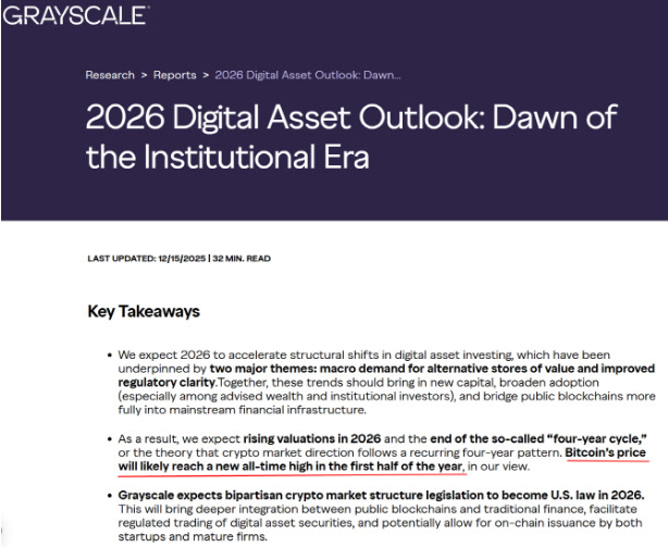 관련해 그레이스케일은 “2026년 디지털자산의 전망이 매우 밝다”며 하락 전망을 일축했다.