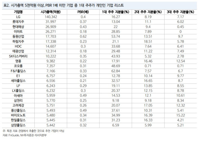 이 연구원은 "기업들의 자구적 노력이 예상될 시 투자 관점에서는 PBR 1배 미만 기업들에 대한 관심